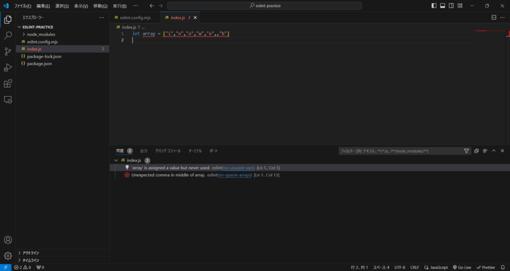 1:5 error 'array' is assigned a value but never used no-unused-vars // arrayが未使用