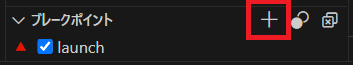 - [実行とデバッグ]ビュー -> [ブレークポイント]セクション -> [+](関数ブレークポイントの追加)ボタン