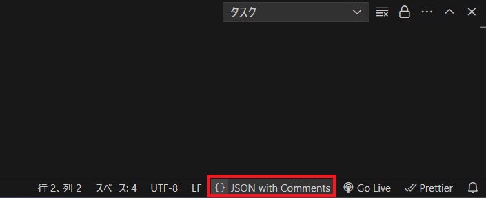 ファイルがJSONとJSONCのどちらとして扱われているかは、ステータスバーを確認すれば良い。